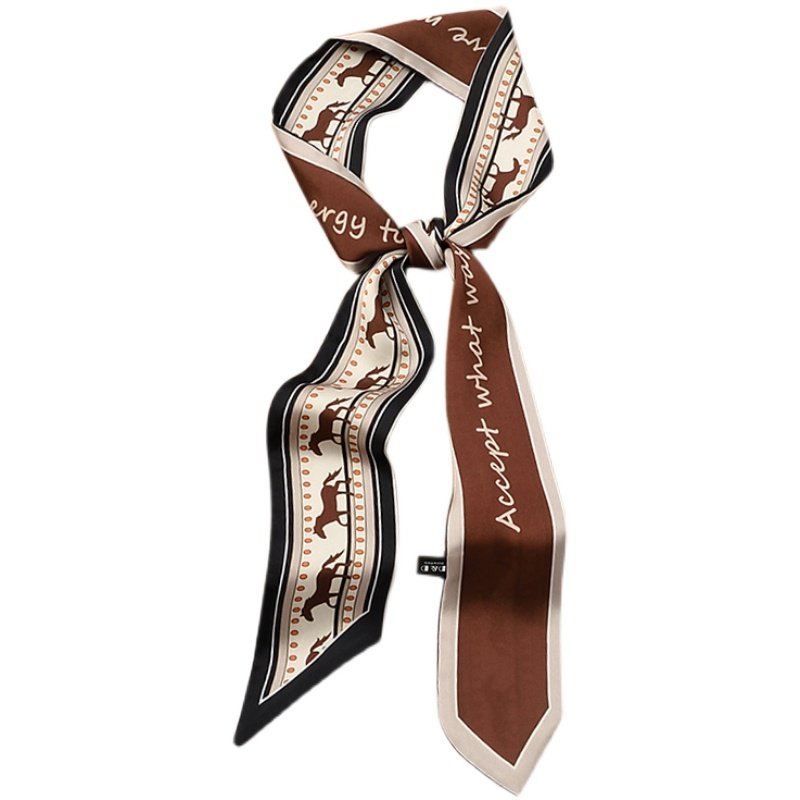 丝巾小长条女复古高级感棕色小马搭配衬衫 绑包包ins头巾发带 领巾