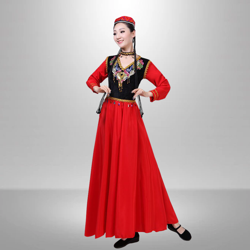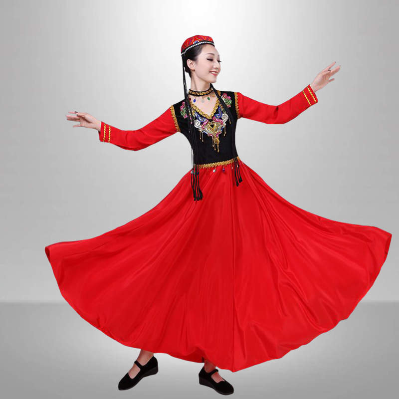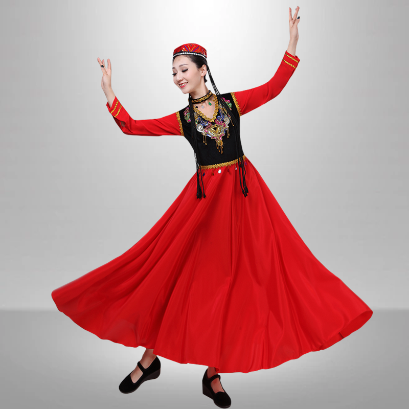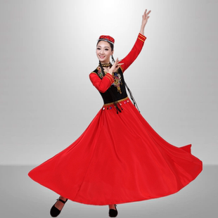 新款 演出服女成人民族风维吾尔族现代表演艺考大摆裙 新疆舞蹈服装