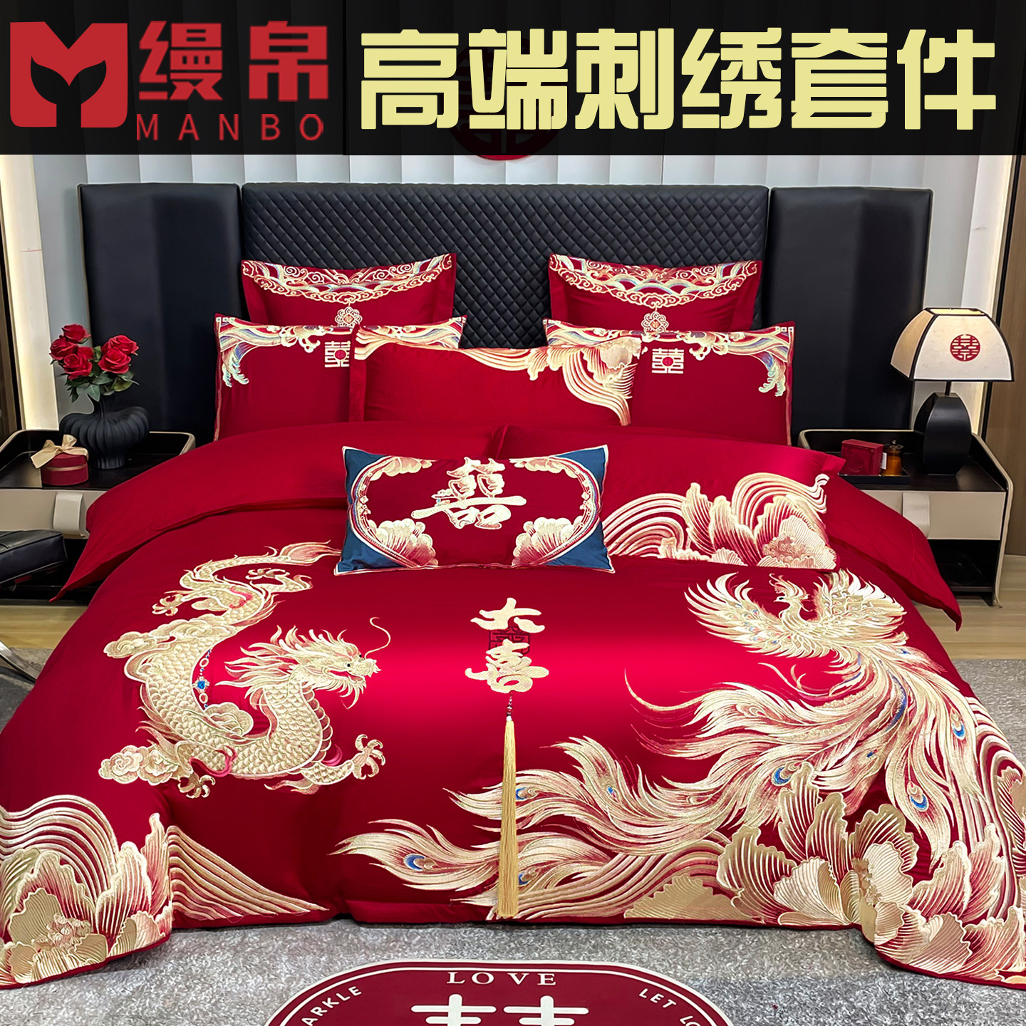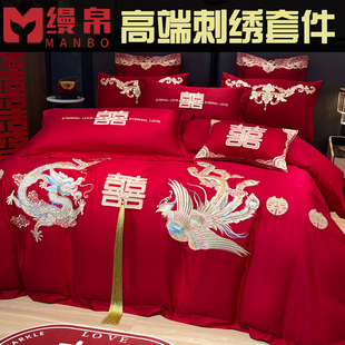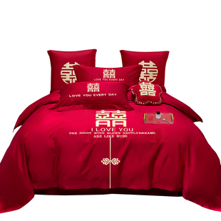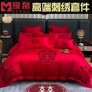 婚庆四件套婚嫁新婚床品刺绣被套红色结婚礼婚房婚床喜庆中式 套件