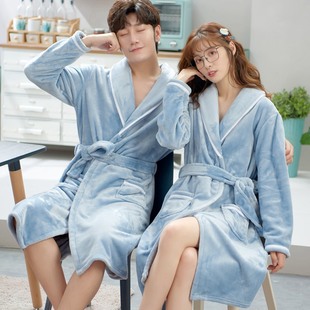 情侣珊瑚绒睡袍女中长晨袍睡衣加厚加绒浴衣2025秋冬大码 法兰绒男
