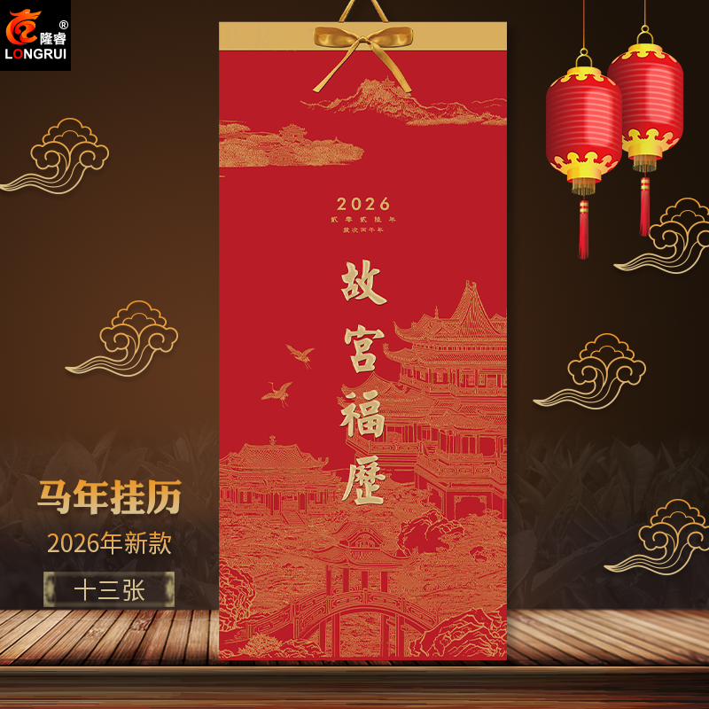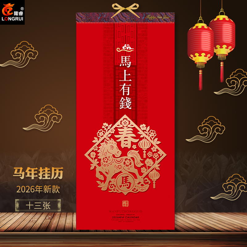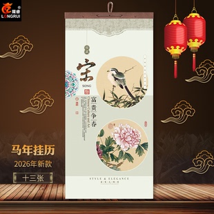 2026年马年挂历定制简约时尚 创意13张月历挂墙手撕月历小长条记事年历中国风山水画公司LOGO订做印刷