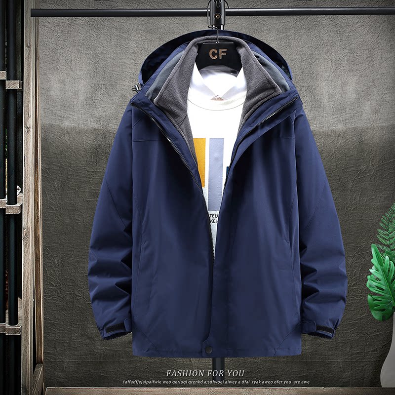 新款 一体加厚冲锋衣印字logo加工定制工服厂服团体服外卖服 秋冬款