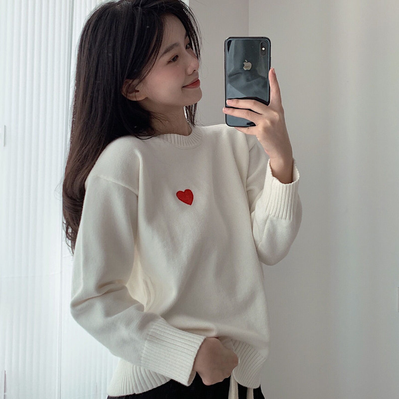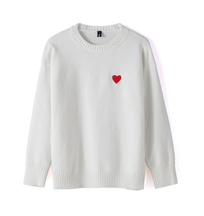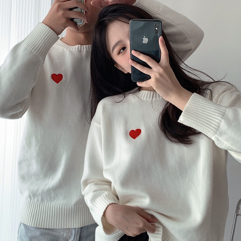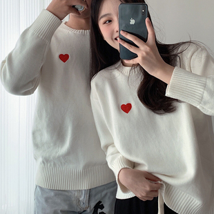 情侣装 超火毛衣白色红心拍结婚登记照领证穿搭红色新年衣服 秋冬季