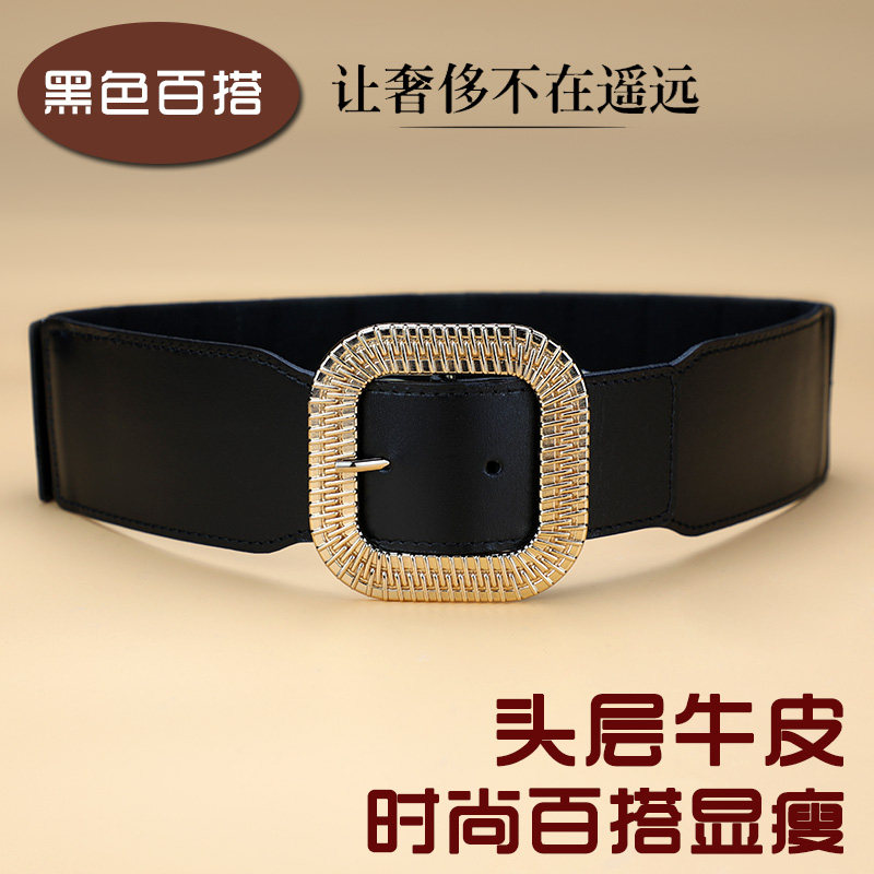 腰封女真皮头层牛皮黑色宽皮带装 饰配裙大衣风衣束腰外搭松紧腰带