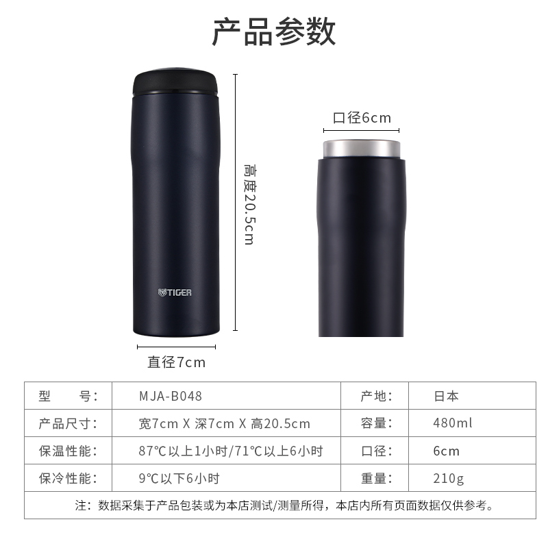 B048日本进口男女士高档水杯子480ml tiger虎牌保温杯MJA 自营