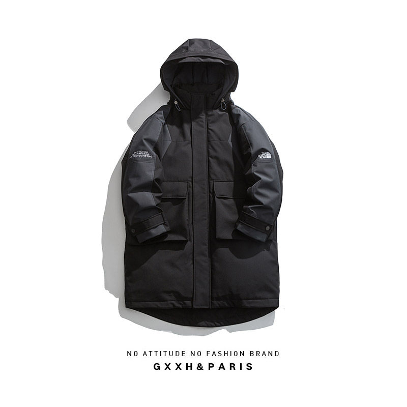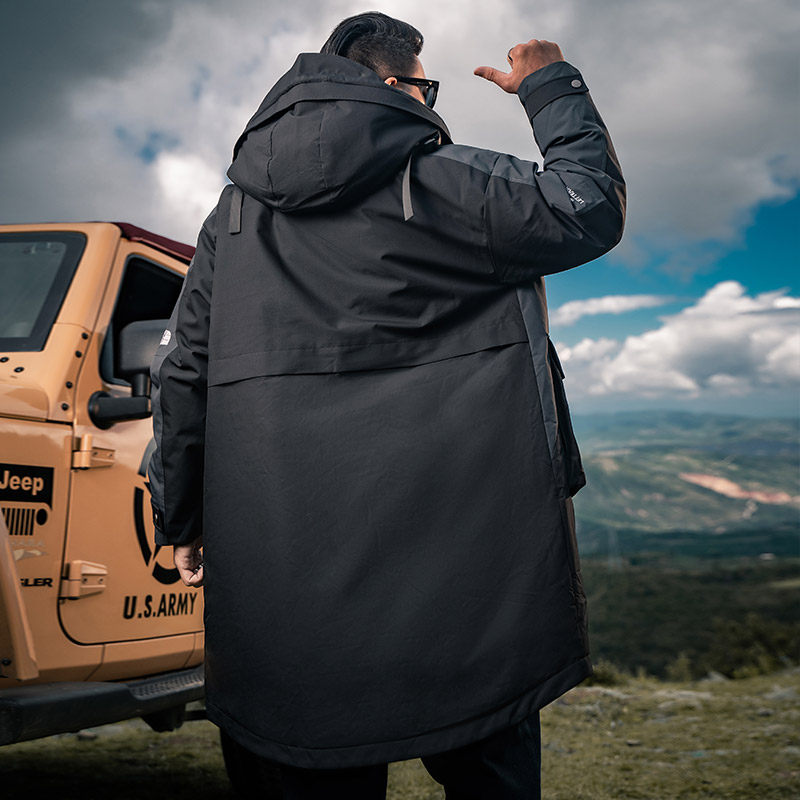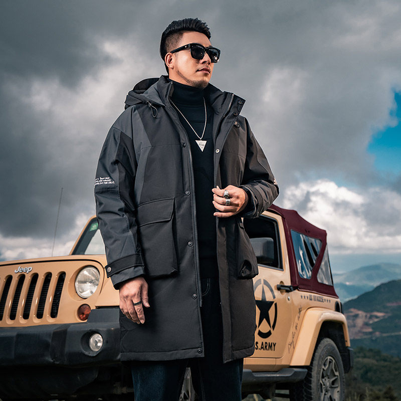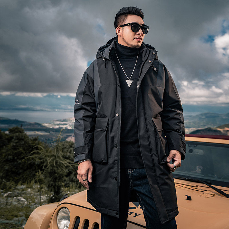 男装 胖子连帽撞色工装 加肥加大号男士 长款 外套 羽绒服冬季 大码