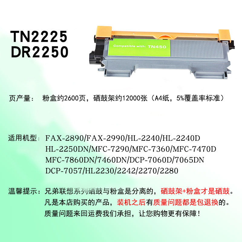 7060D 适用兄弟打印机DCP 7860多功能一体机7360墨盒7460碳粉2240 2250DN硒鼓MFC TN2225大容量 7065DN粉盒HL