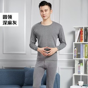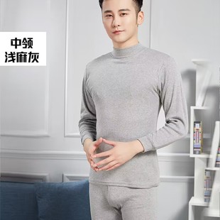 棉毛衫 男士 圆领薄款 套装 青年不加绒保暖内衣中老年 中高领秋衣秋裤