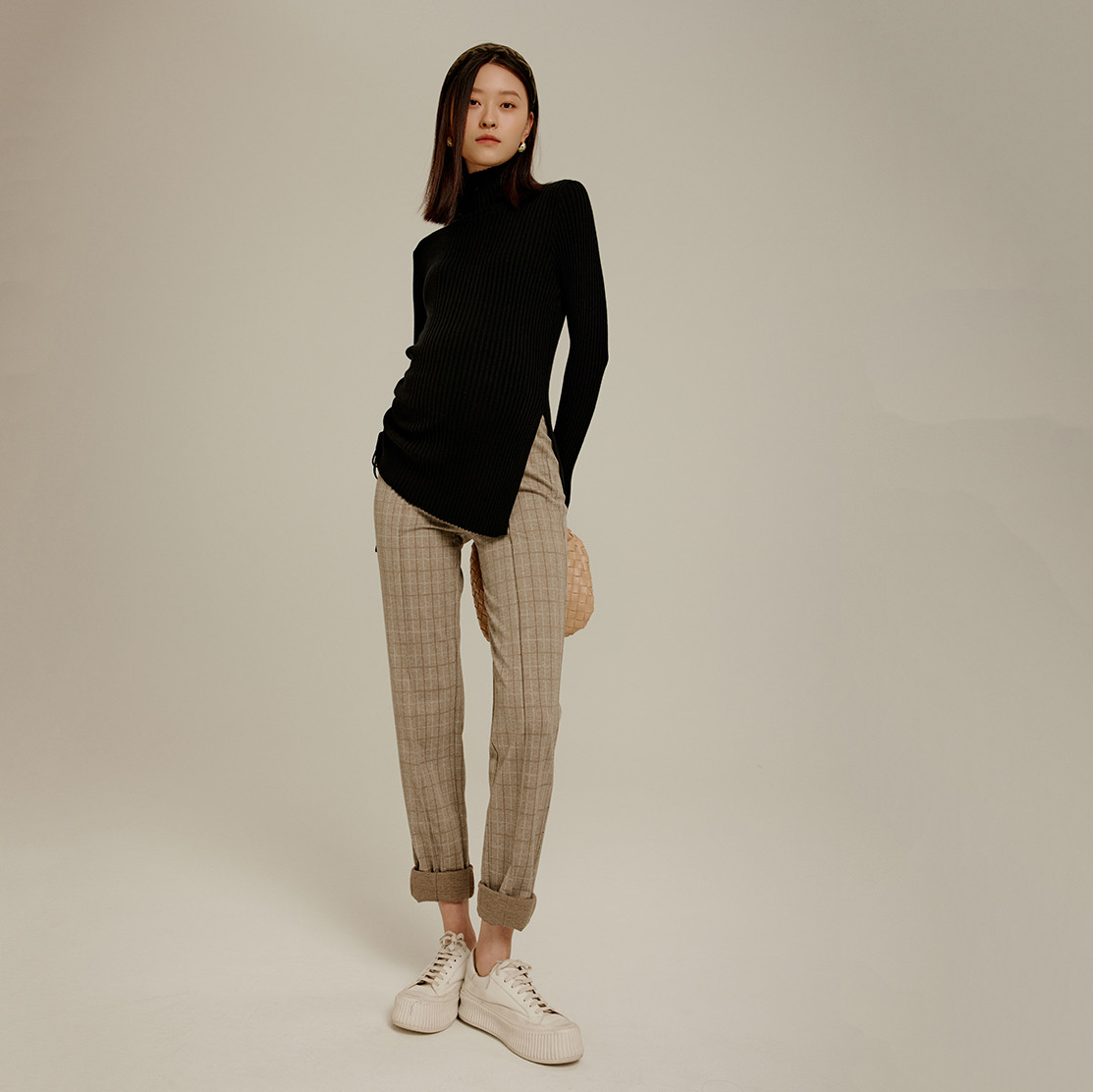 高领侧开衩抽绳针织上衣打底衫 SELLYNEAR孕妇毛衣女秋冬新款 时尚