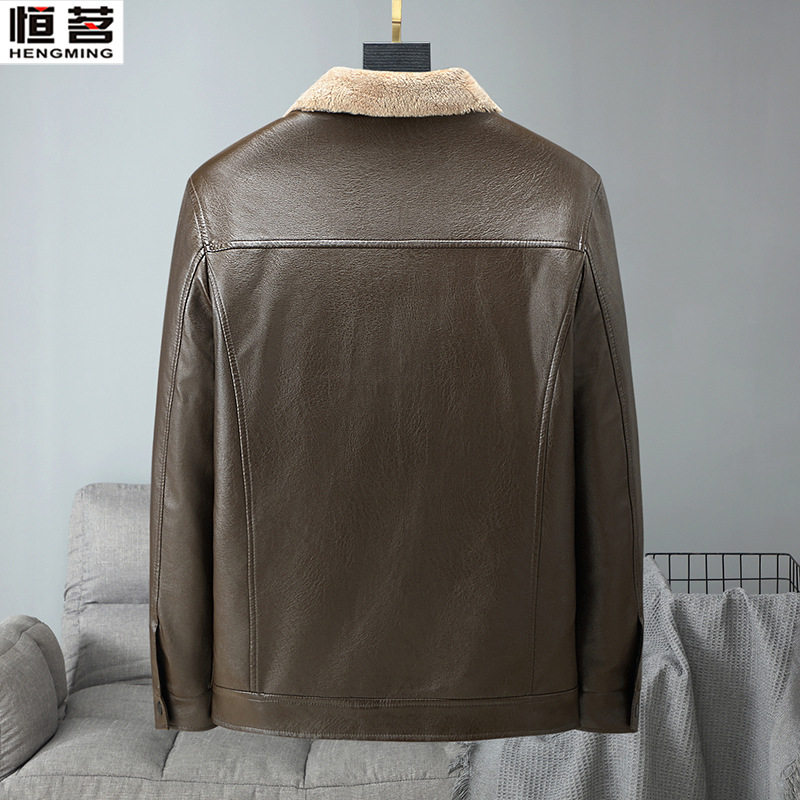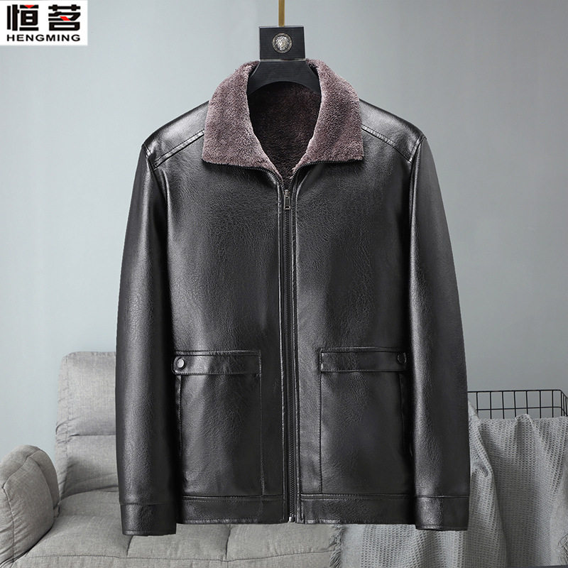 皮夹克中年PU男式 皮衣男皮毛一体立领男士 机车皮外套 新款 2021冬季