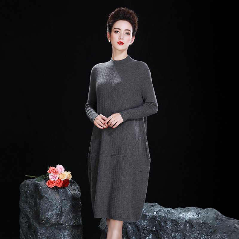 山羊绒衫 连衣裙宽松显瘦秋冬针织羊绒毛衣裙针织羊绒长裙 女中长款