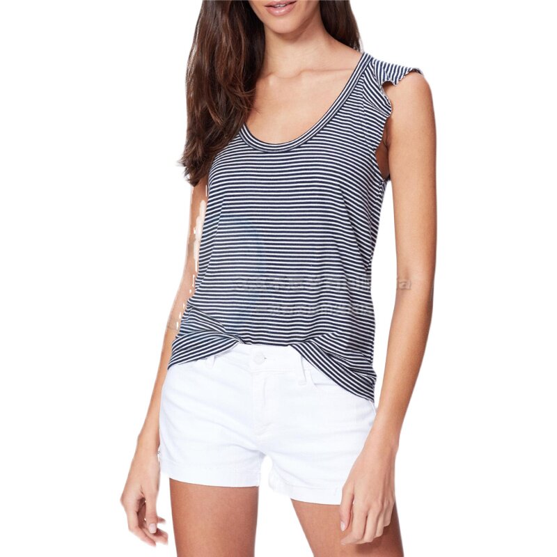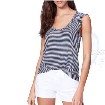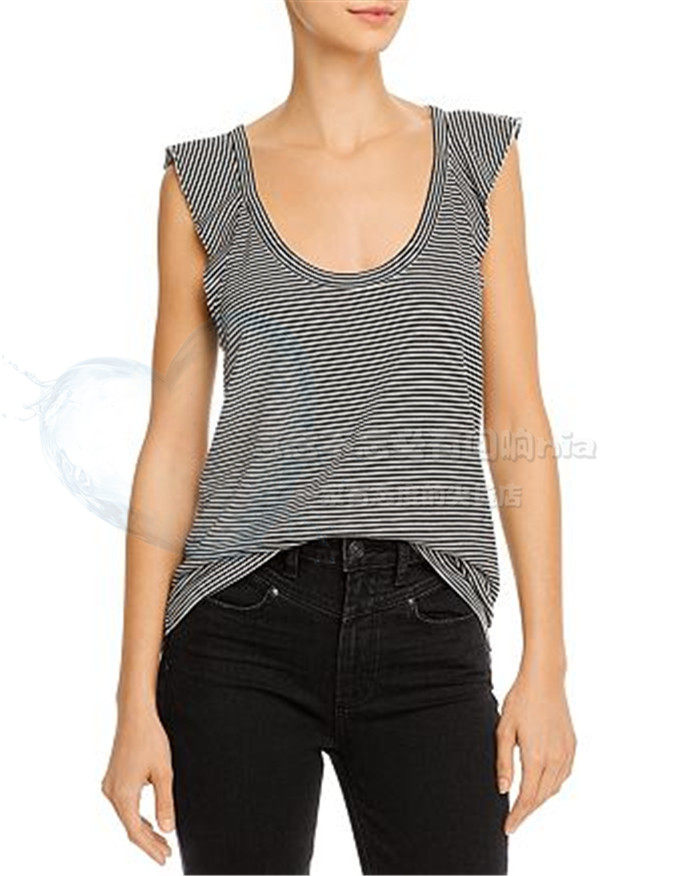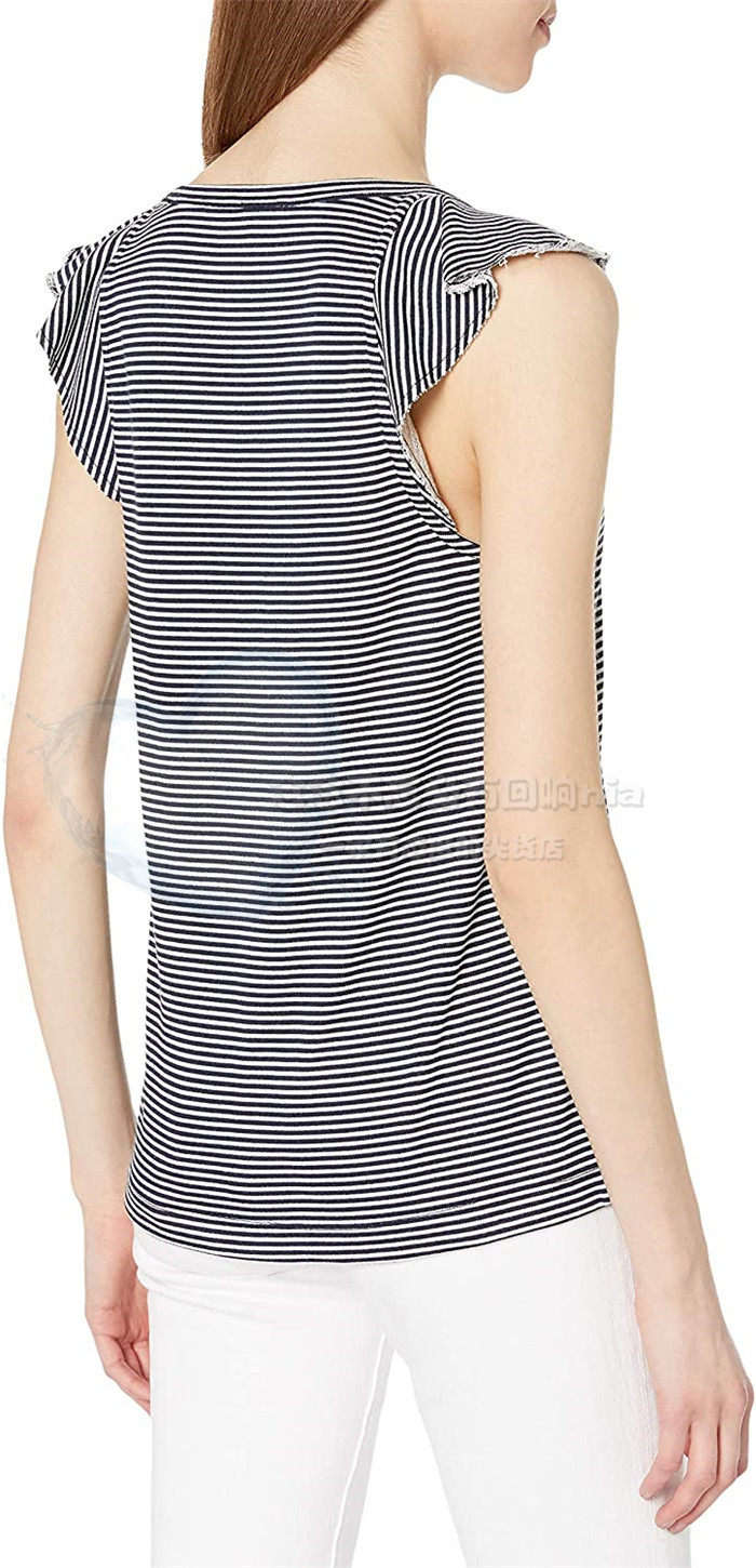 无袖 119美金条纹毛圈卫衣料木耳边飞袖 背心T恤 美国paige纯元 清仓