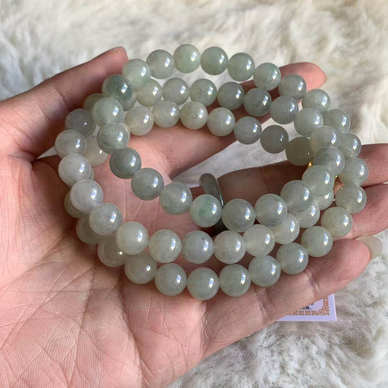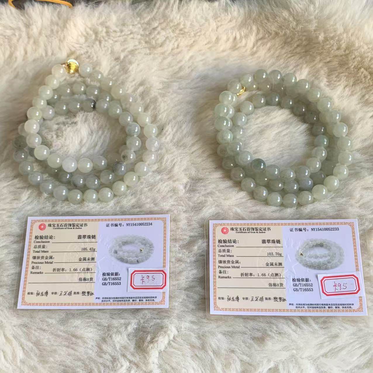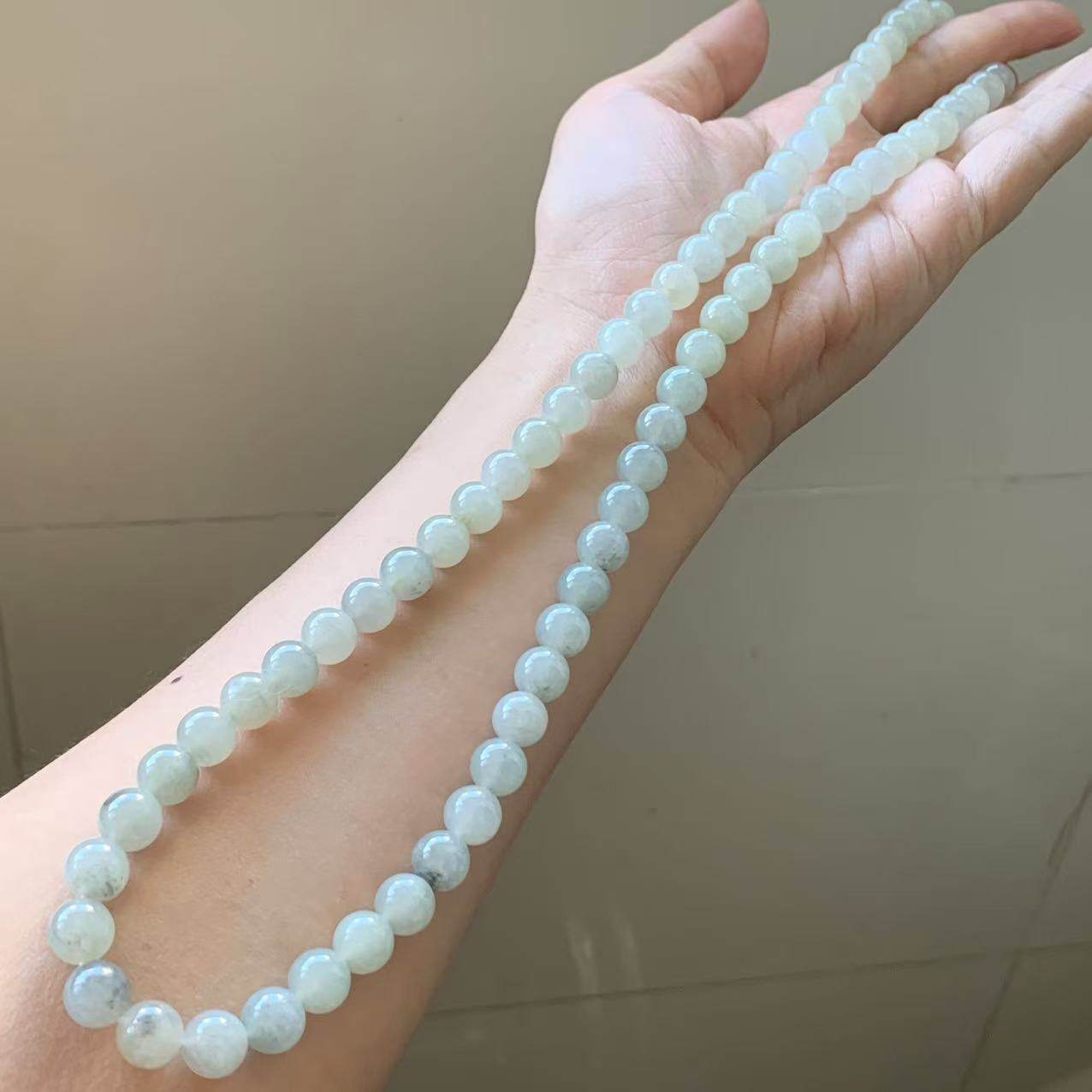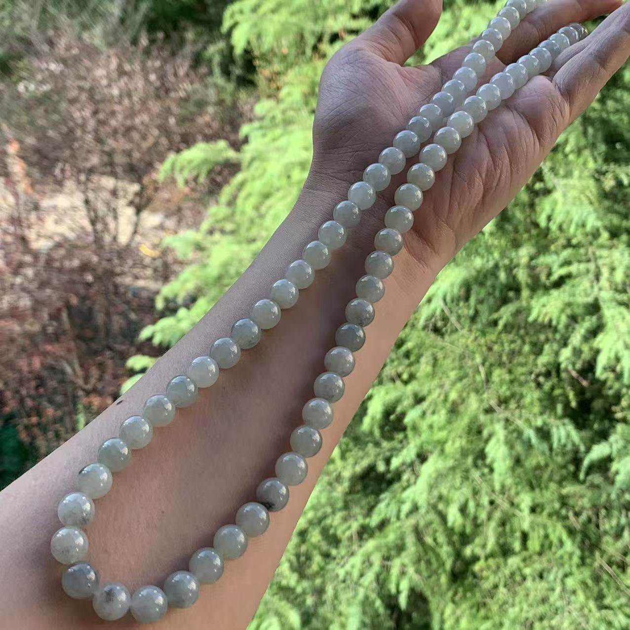 缅甸天然A货翡翠项链糯冰老坑料黑色乌鸡飘花翡翠圆珠项链9.5mm