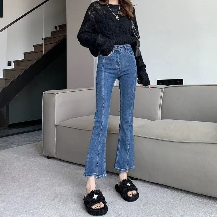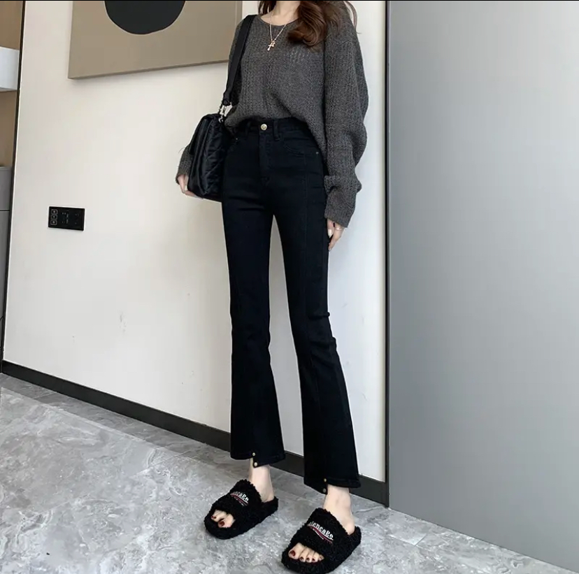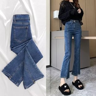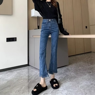 弹力九分裤 辣妹风显瘦微喇叭牛仔裤 小个子高腰喇裤 百搭法式 女修身