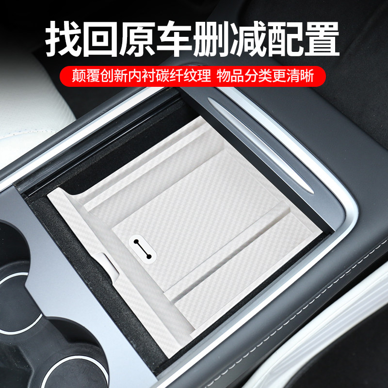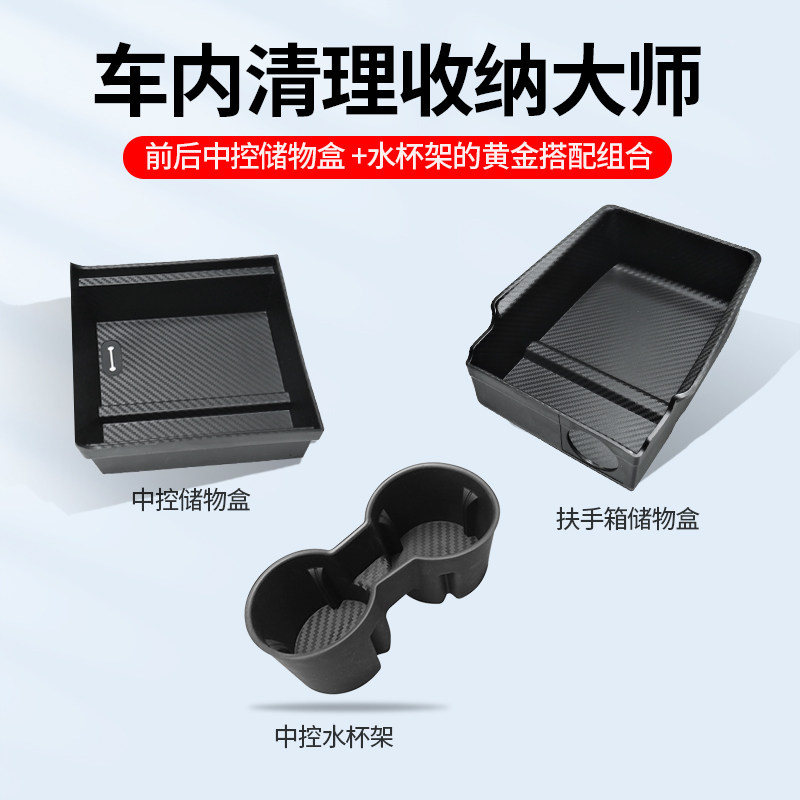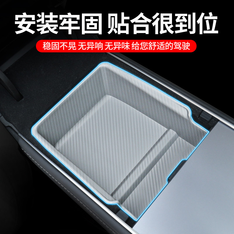 适用于特斯拉model3 饰配件 Y中控储物盒TPE扶手箱置物盒水杯架装