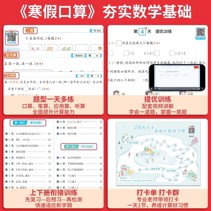 2026新一本寒假口算计算应用题寒假作业小学数学语文一三二四五六年级上册下册人教版 寒假阅读理解专项训练练字帖口算题卡课外衔接