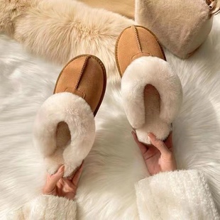 冬季 毛毛拖鞋 女厚底外穿羊皮毛一体包头雪地靴半拖一脚蹬懒人棉鞋