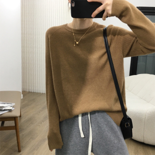 女韩版 纯色针织衫 宽松百搭软糯毛衣 圆领插肩袖 细米定制春秋基础款