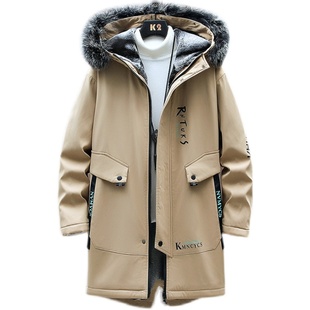 男士 羽绒服男中长款 潮牌保暖派克服冬装 2025新款 加绒加厚外套 冬季