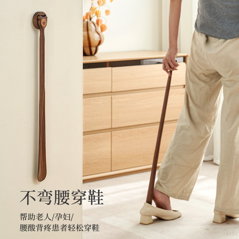 神器创意可爱鞋 穿鞋 抽磁吸 拔子长柄家用孕妇黑胡桃实木提鞋 猫爪鞋