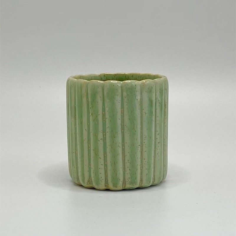新款 花盆陶瓷竖纹现代北欧风简约花盆大号特大号带托盘桌面绿植盆