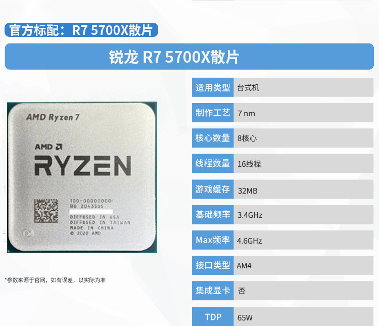 CPU主板套装 5700X 8核心16线程搭B450M华硕B550 散片 锐龙AMD
