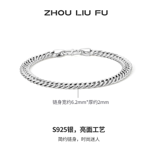 周六福S925纯银双扣手链男2025潮简约小众设计感嘻哈送男友礼物