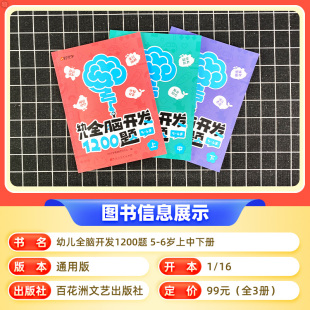 6岁左右脑思维逻辑专注力训练学前幼小衔接儿童宝宝启蒙游戏书籍 时光学全脑开发1200题上中下全3册幼儿早教智力潜能开发3