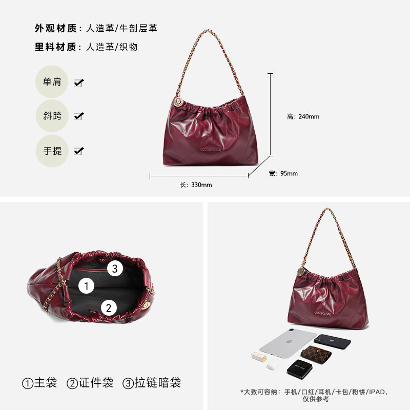 百丽包包女大容量托特包流浪包女友礼物红色链条包单肩包X6603AX3