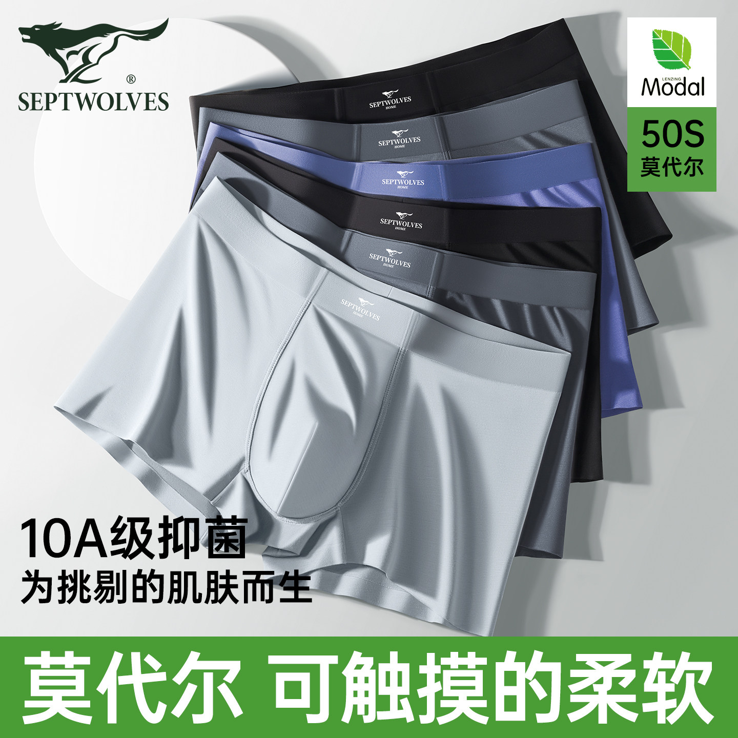 无痕裤 男生莫代尔冰丝四角短裤 衩男式 平角裤 七匹狼男士 头男款 内裤