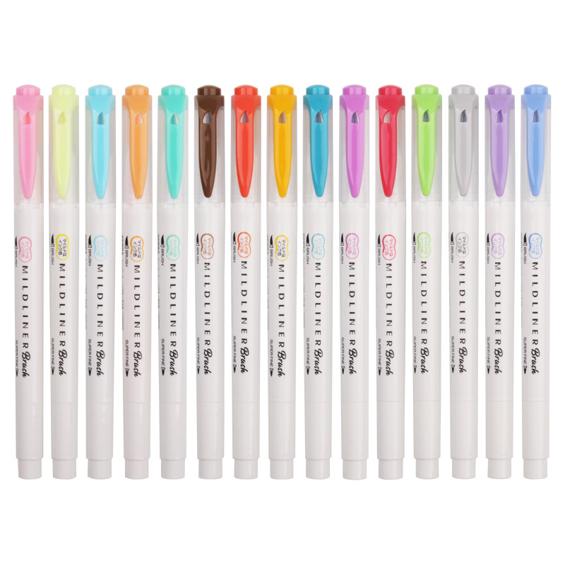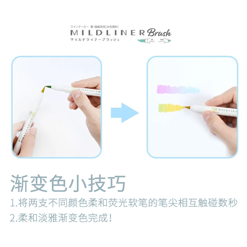 ZEBRA日本斑马荧光笔brush软毛笔水彩笔双头WFT8彩色手账英文涂色