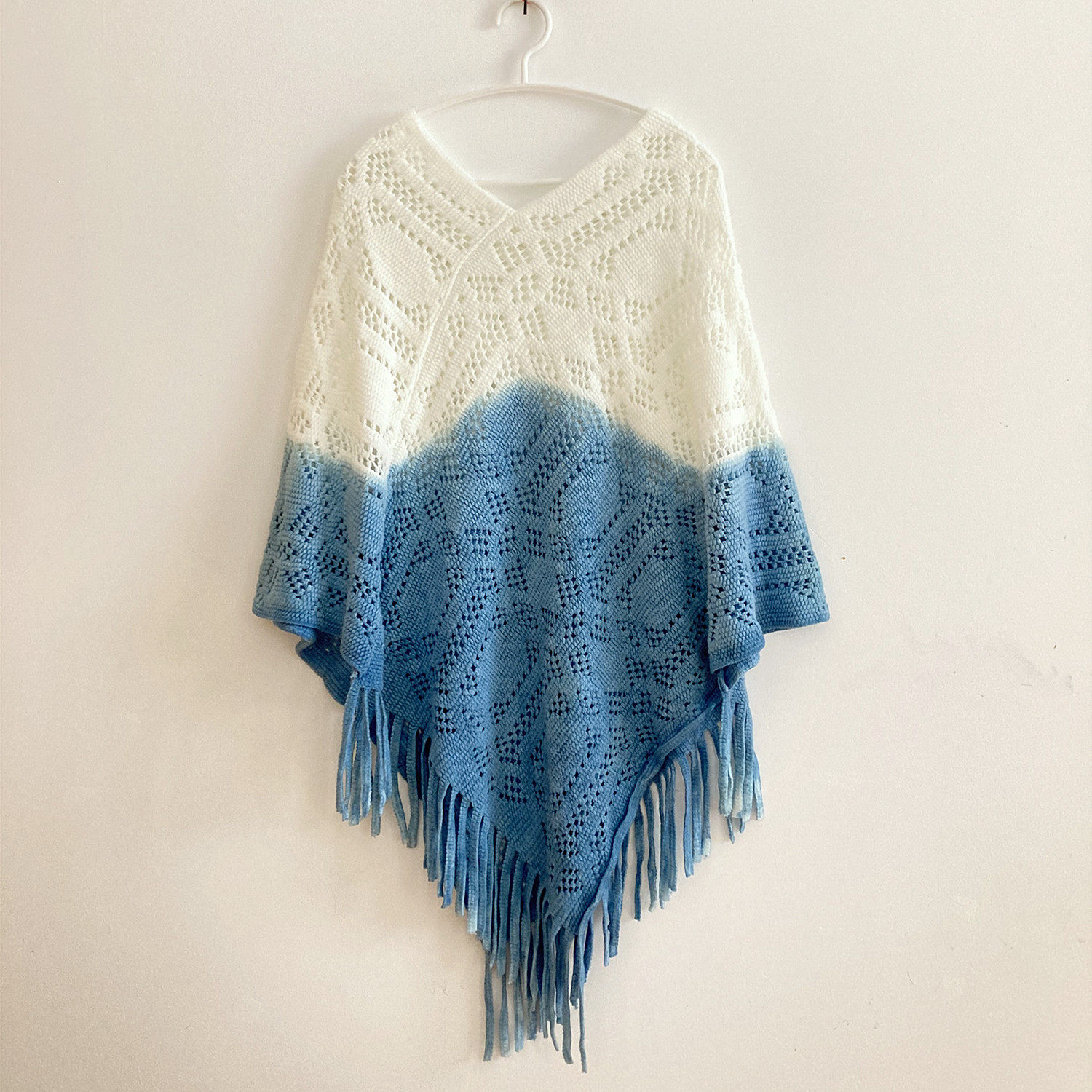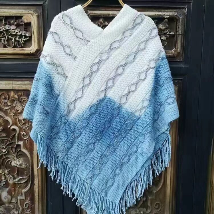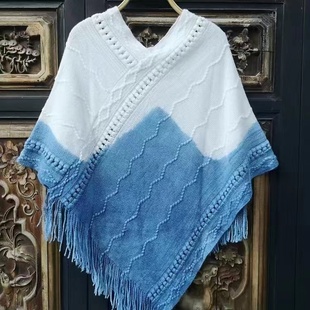 云南大理白族扎染针织披肩文艺保暖蓝白披巾休闲舒适柔软扎染布艺