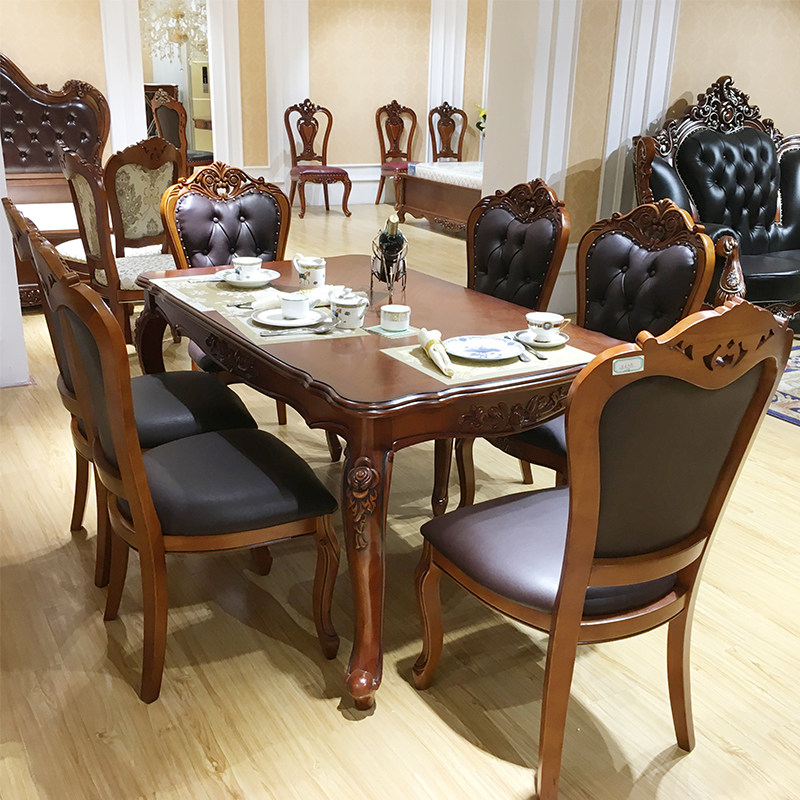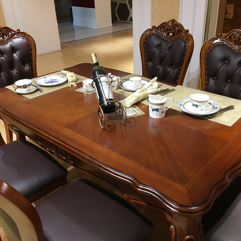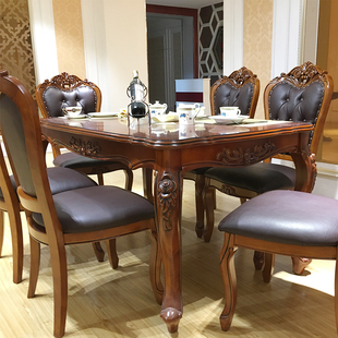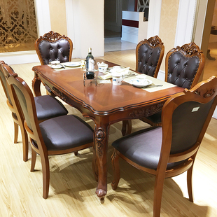 全友家居新中式 宽大桌面胡桃木色餐桌客厅长方形饭桌椅组合大板桌