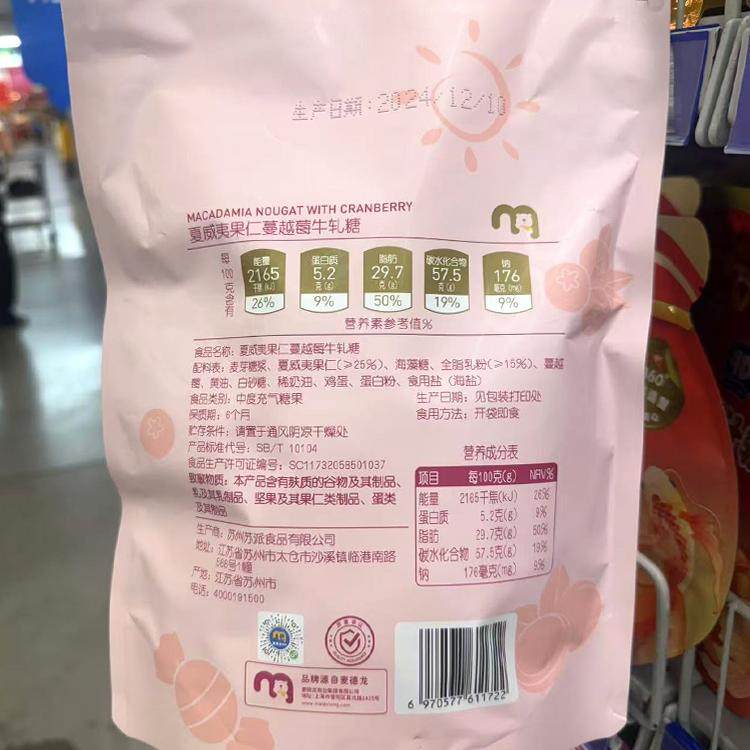 麦德龙代购 麦臻选夏威夷果仁蔓越莓牛轧糖450g奶糖小零食年货喜糖