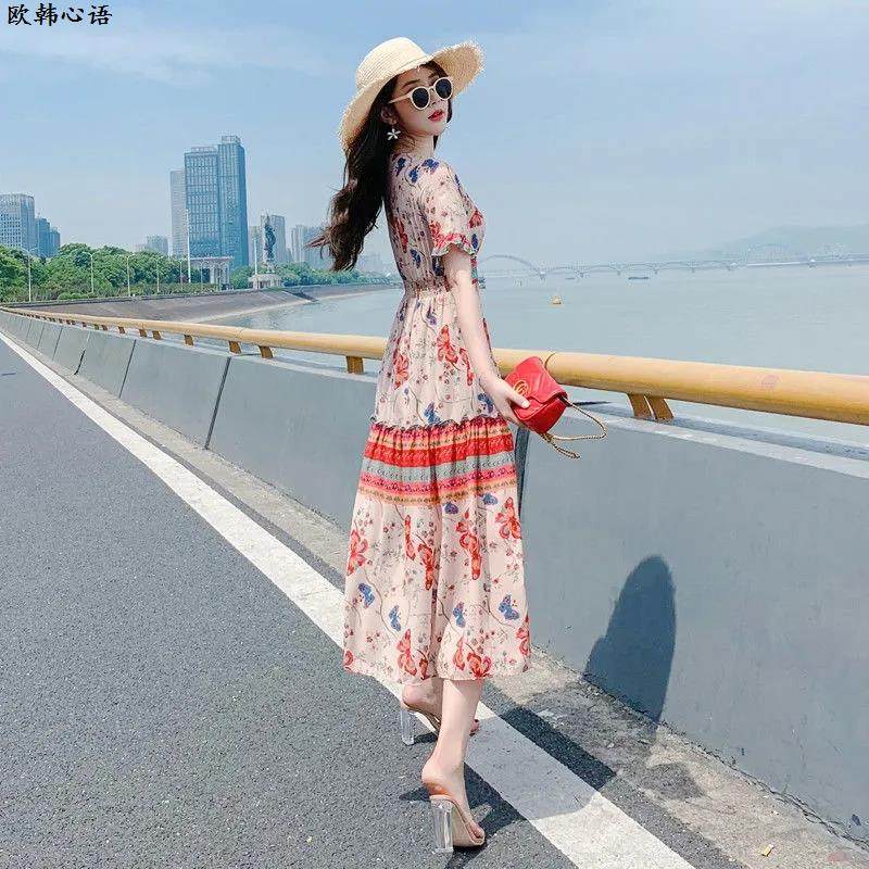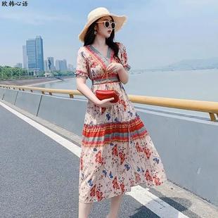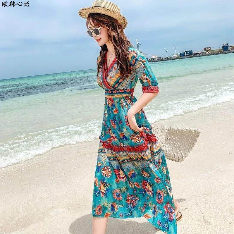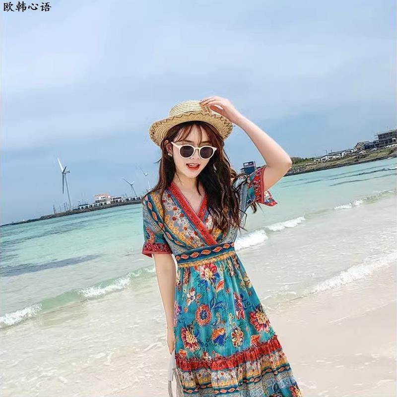 海边度假连衣裙女夏季 超仙气质波西米亚民族风裙子三亚沙滩长裙女
