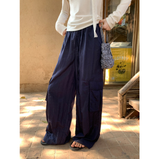 现货5折 女轻薄降落伞裤 松紧腰工装 宽松阔腿休闲裤 裤 pusumede
