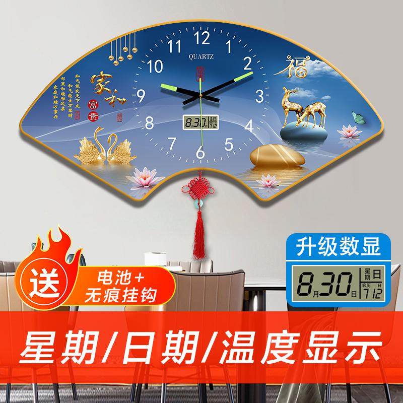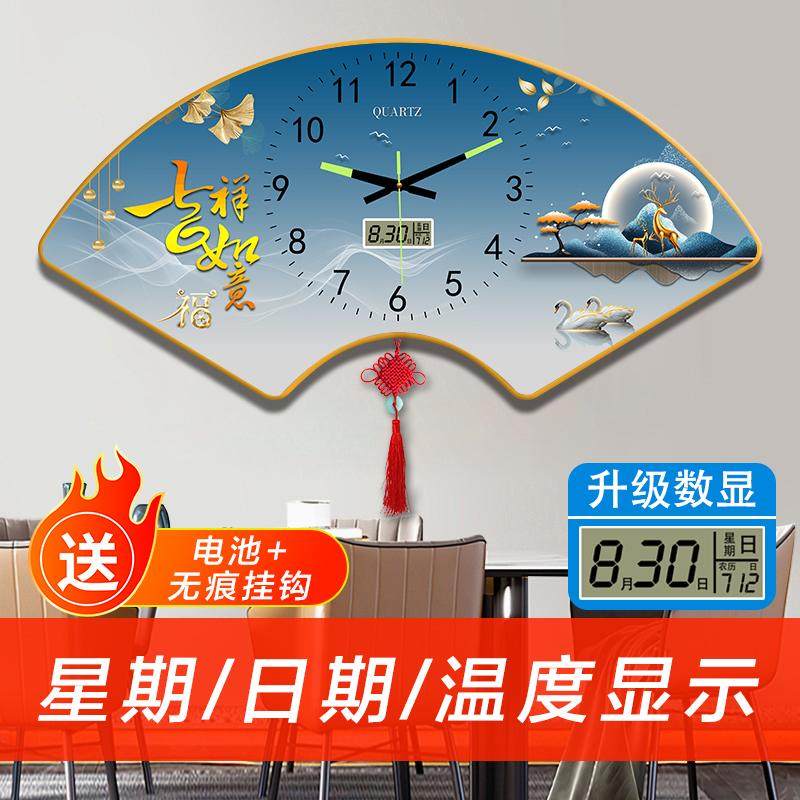 新款 饰画挂钟 扇形夜光免打孔静音墙上挂钟现代餐厅钟表客厅简约装