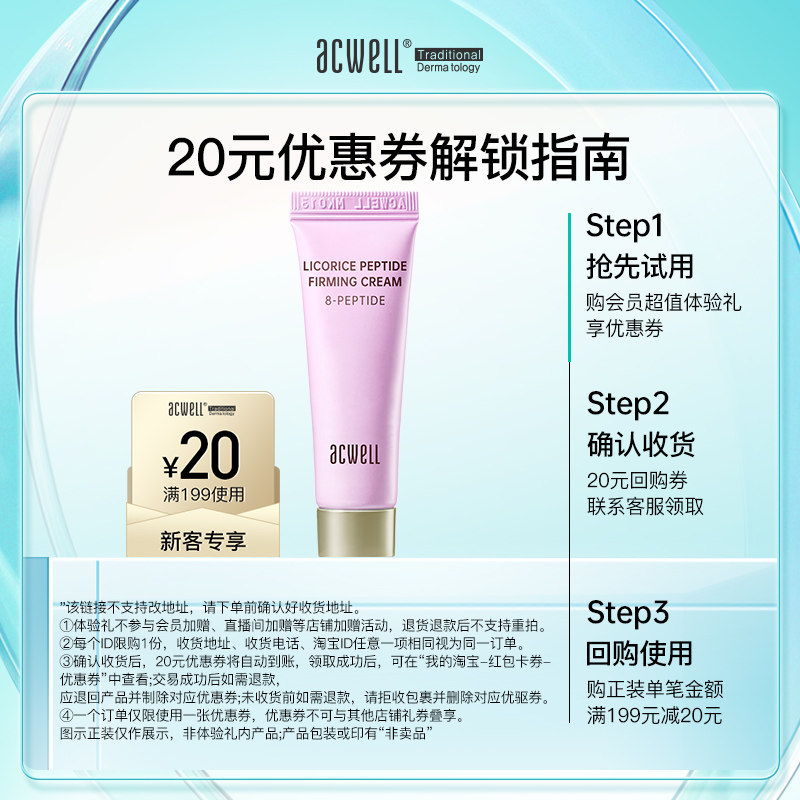 u先ACWELL艾珂薇购20元 回购券享单支10ml胜肽甘草紧致面霜