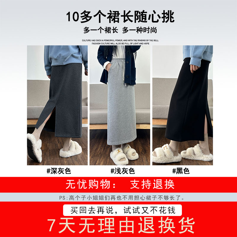 半身裙女胖妹妹高腰mm显瘦后开叉直筒长裙 黑色毛呢款 巨好看 大码