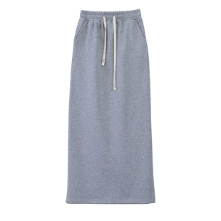 秋冬毛呢中裙加长款 灰色高级感梨形半身裙 韩系高腰显瘦a字裙大码