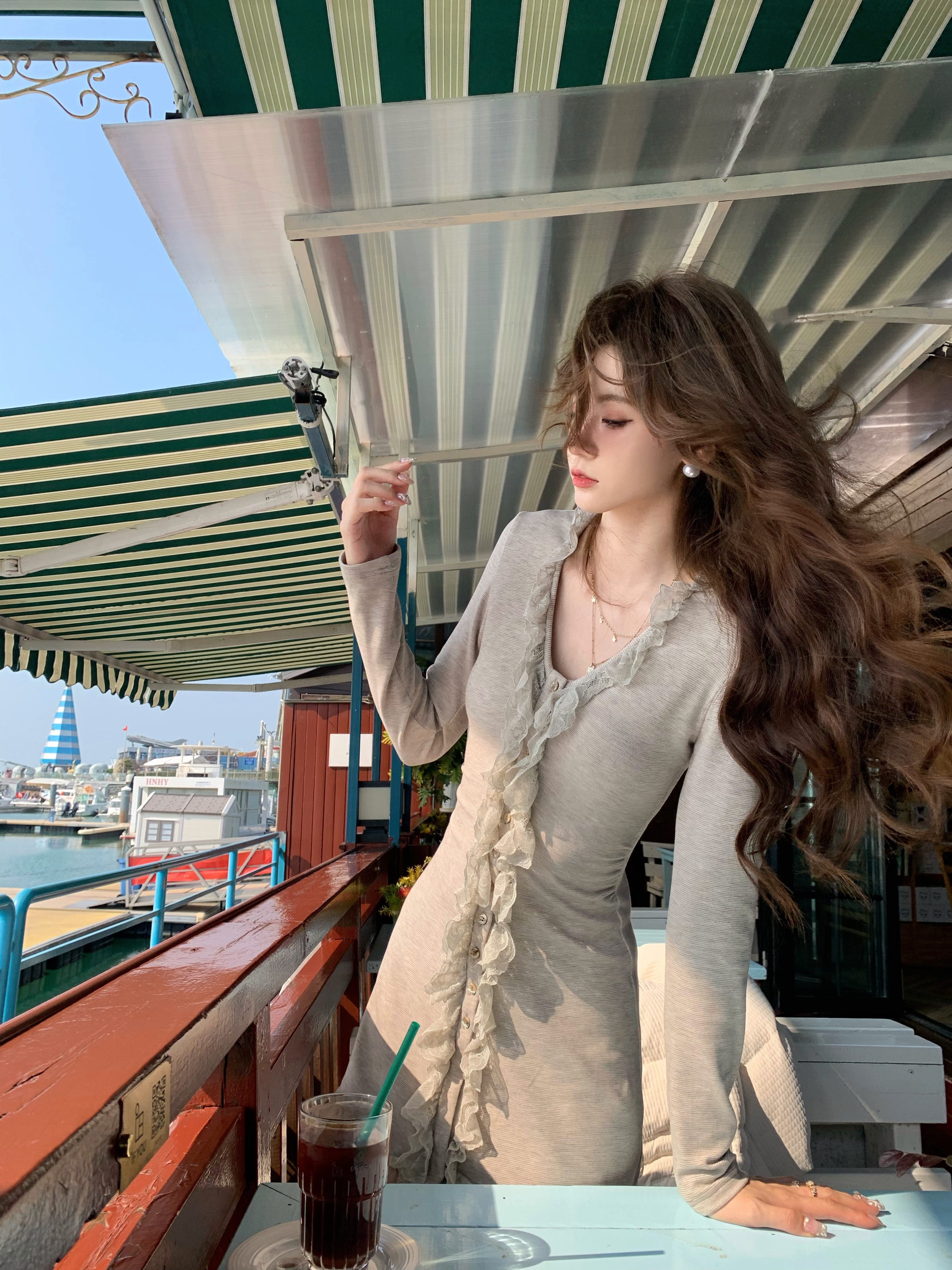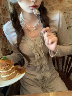 蕾丝收腰V领连衣裙女加绒气质短裙 月光贝莉 八盖pinky piggy
