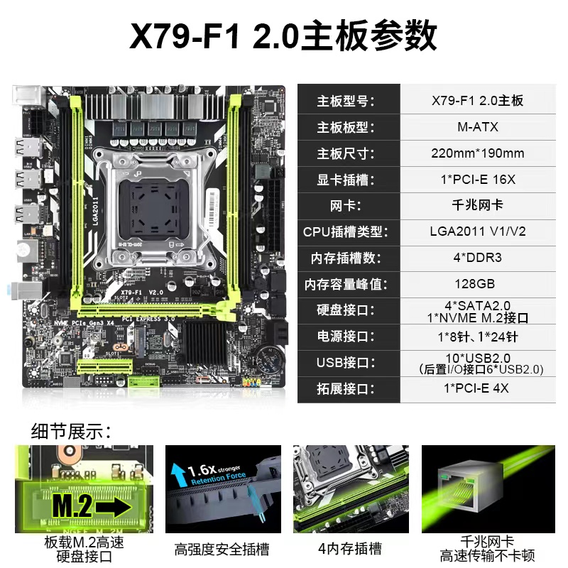 X79 2680v3套装 X58主板1366 机豪华大板cpuE5 2011针电脑台式 X99