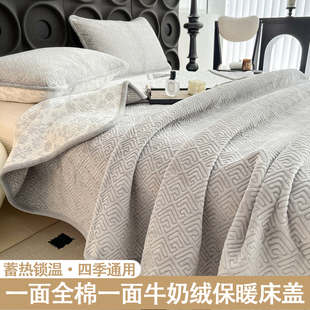 纯棉牛奶绒床盖一面绒一面棉毯加厚床单绗缝全棉加绒夹棉双面可用