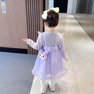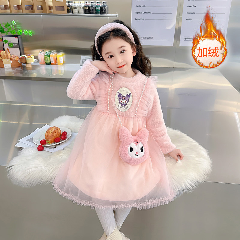 连衣裙女秋冬小熊千金感miu系长裙子 假两件长袖 织物猪 枫糖撞奶