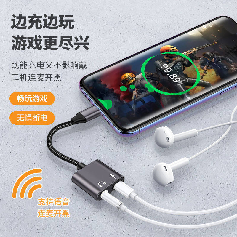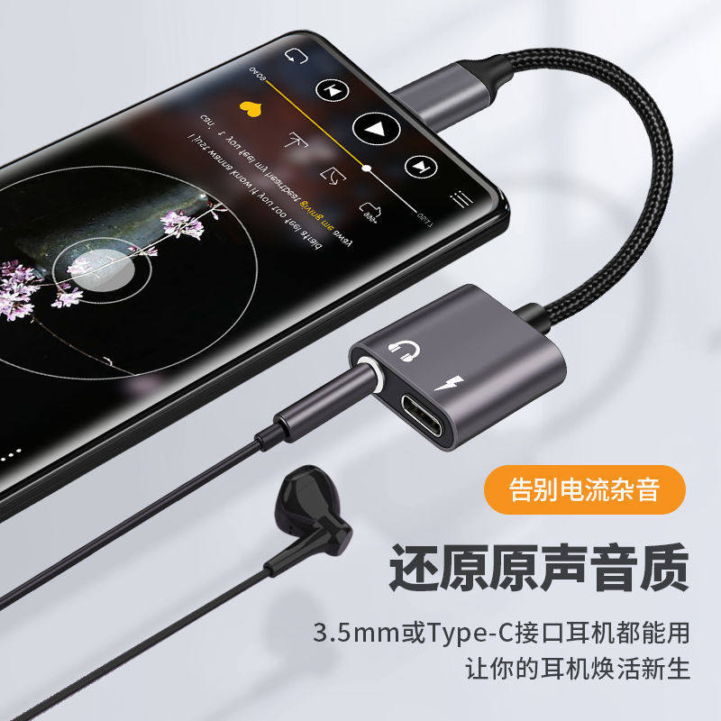适用红米note10pro耳机转接头线vivos17充电听歌游戏二合一转换器
