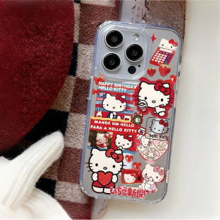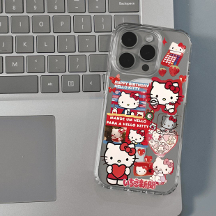 日韩ins风可爱helloKitty贴画适用iPhone15ProMax磁吸手机壳苹果14pro卡通凯蒂猫透明11 xr大孔全包保护套