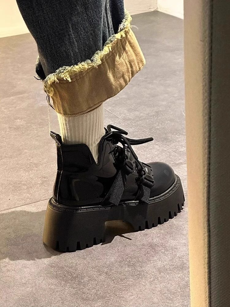 厚底马丁靴女2025春秋新款 单靴潮 小个子英伦风短靴子加绒甜酷爆款