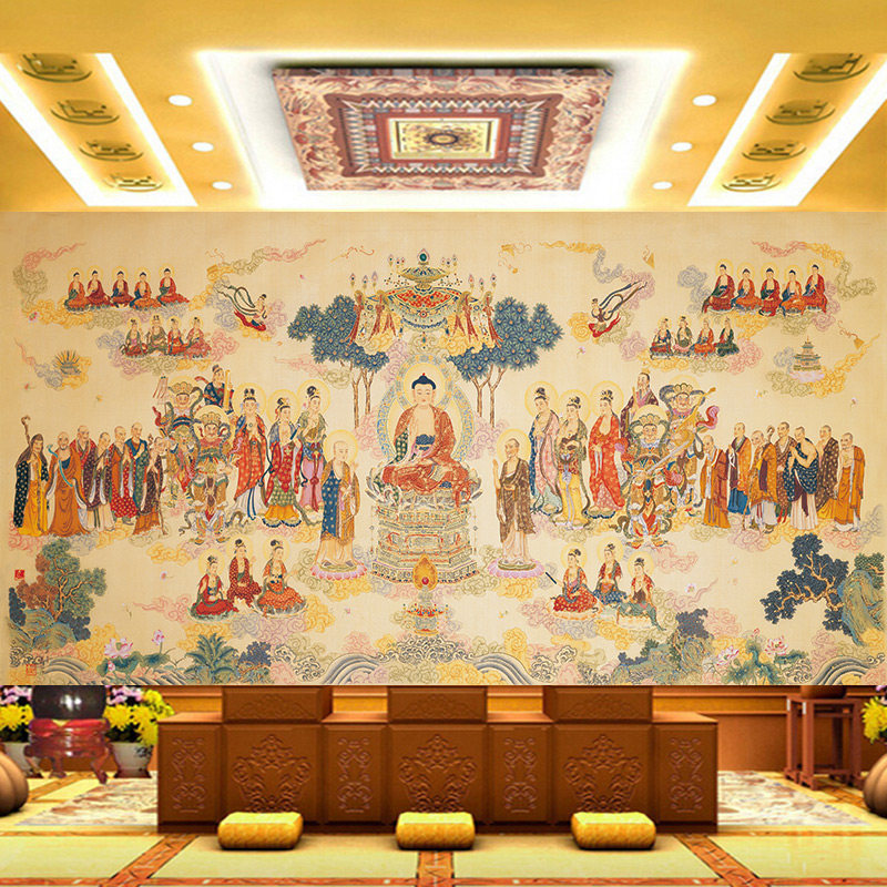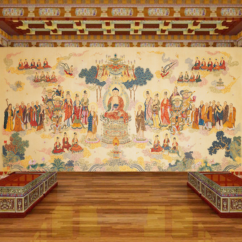 全佛图墙纸佛祖大剩佛学寺庙佛堂菩萨庄严背景墙装 饰法界源流壁画