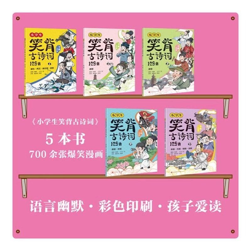 5册 小学生笑背古诗词129首·全新完整版 扫码 听全诗注音爆笑漫画哈哈大笑40万读者品牌升级版 磨铁 正版 本适合小学生古诗词 包邮