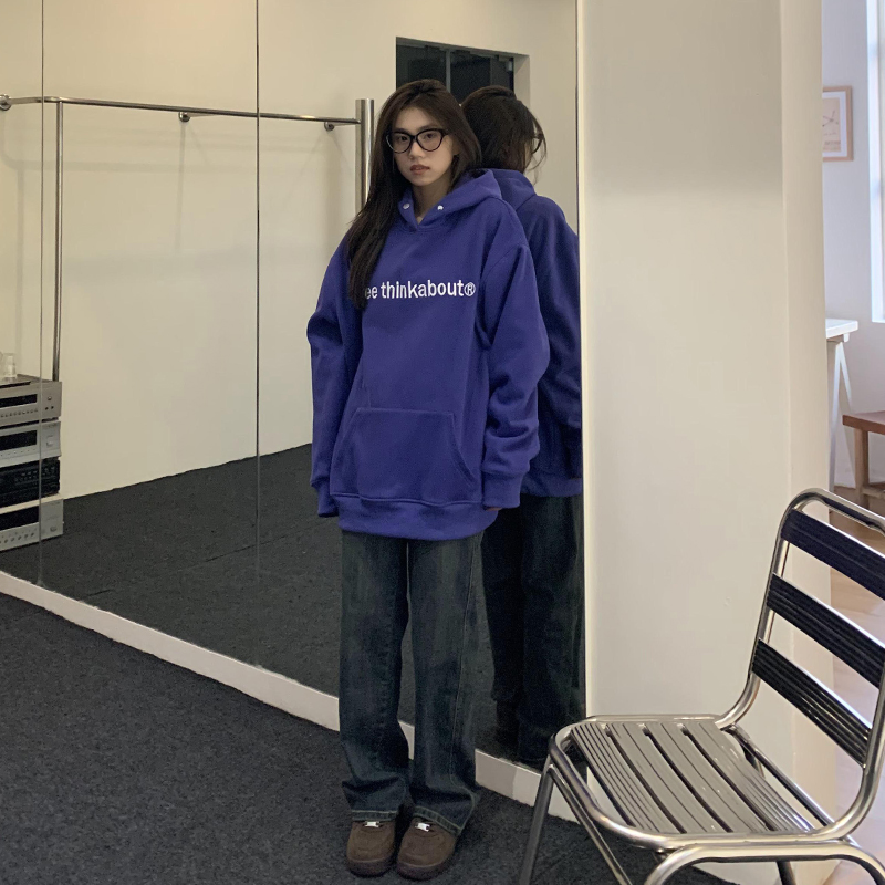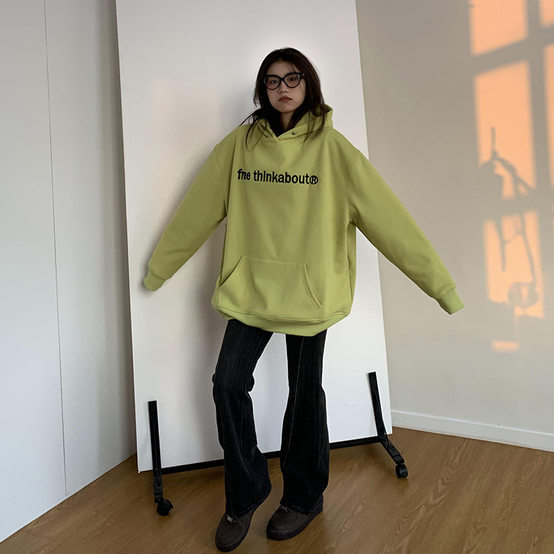 橘子树在哪儿字母重工刺绣加绒连帽卫衣秋冬男女同款 宽松百搭帽衫